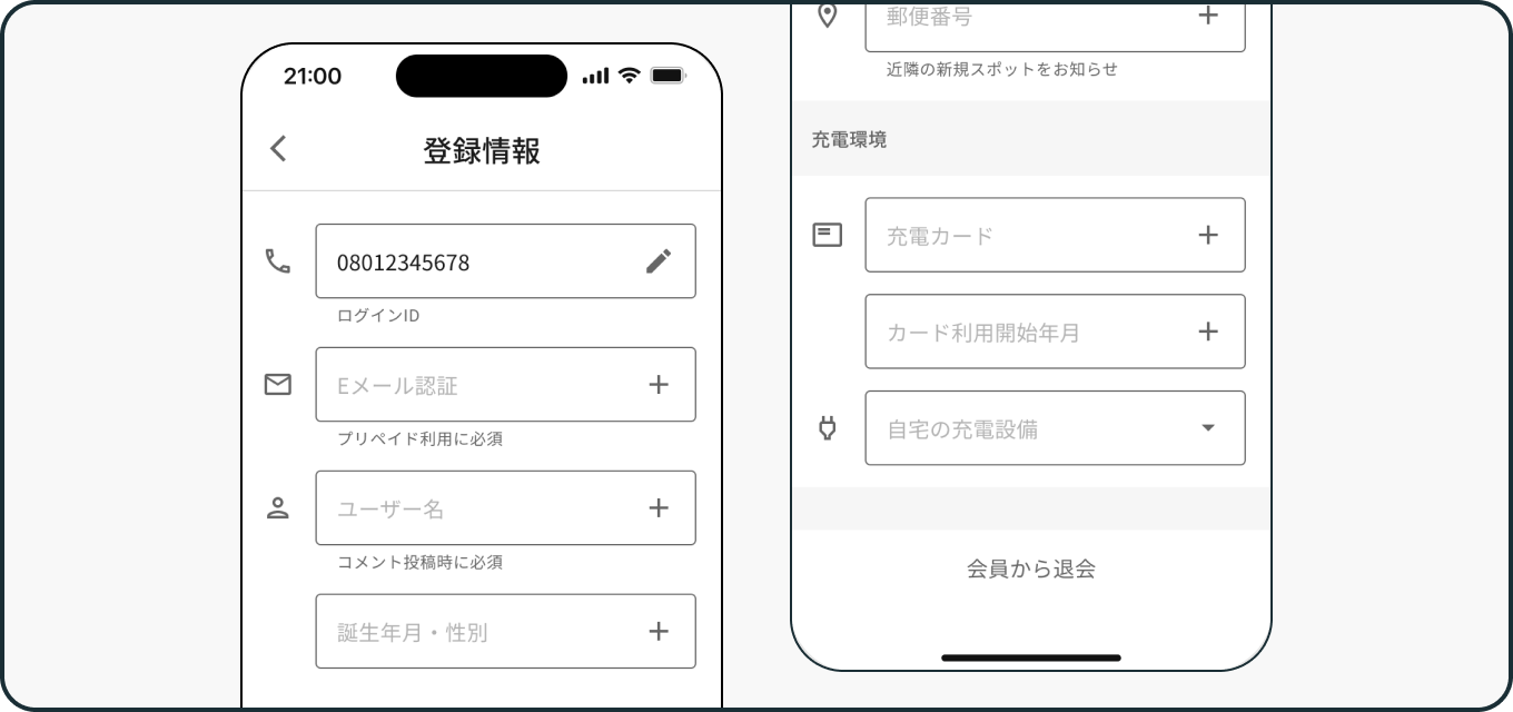本プロジェクトでは事前に情報をご登録いただくことで、期間中は都度入力なしで充電器を利用できます。