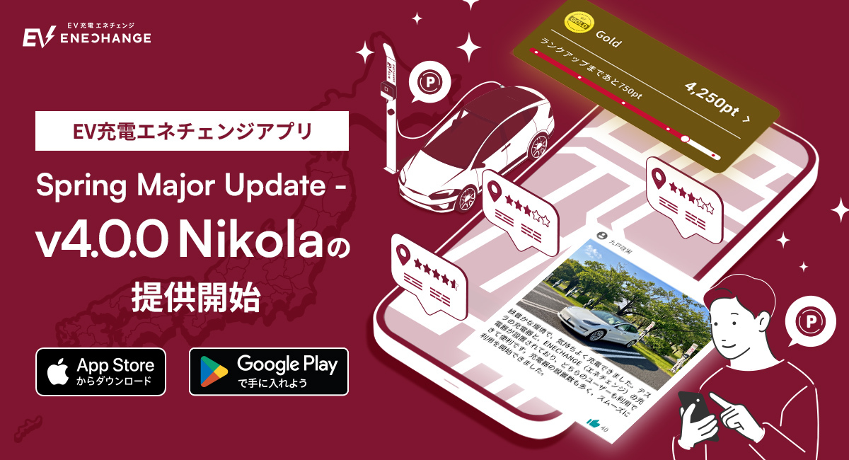 2026年4月22日(水)に、「EV充電エネチェンジ」アプリV4.0.0(コードネーム「ニコラ」)を配信いたしました。